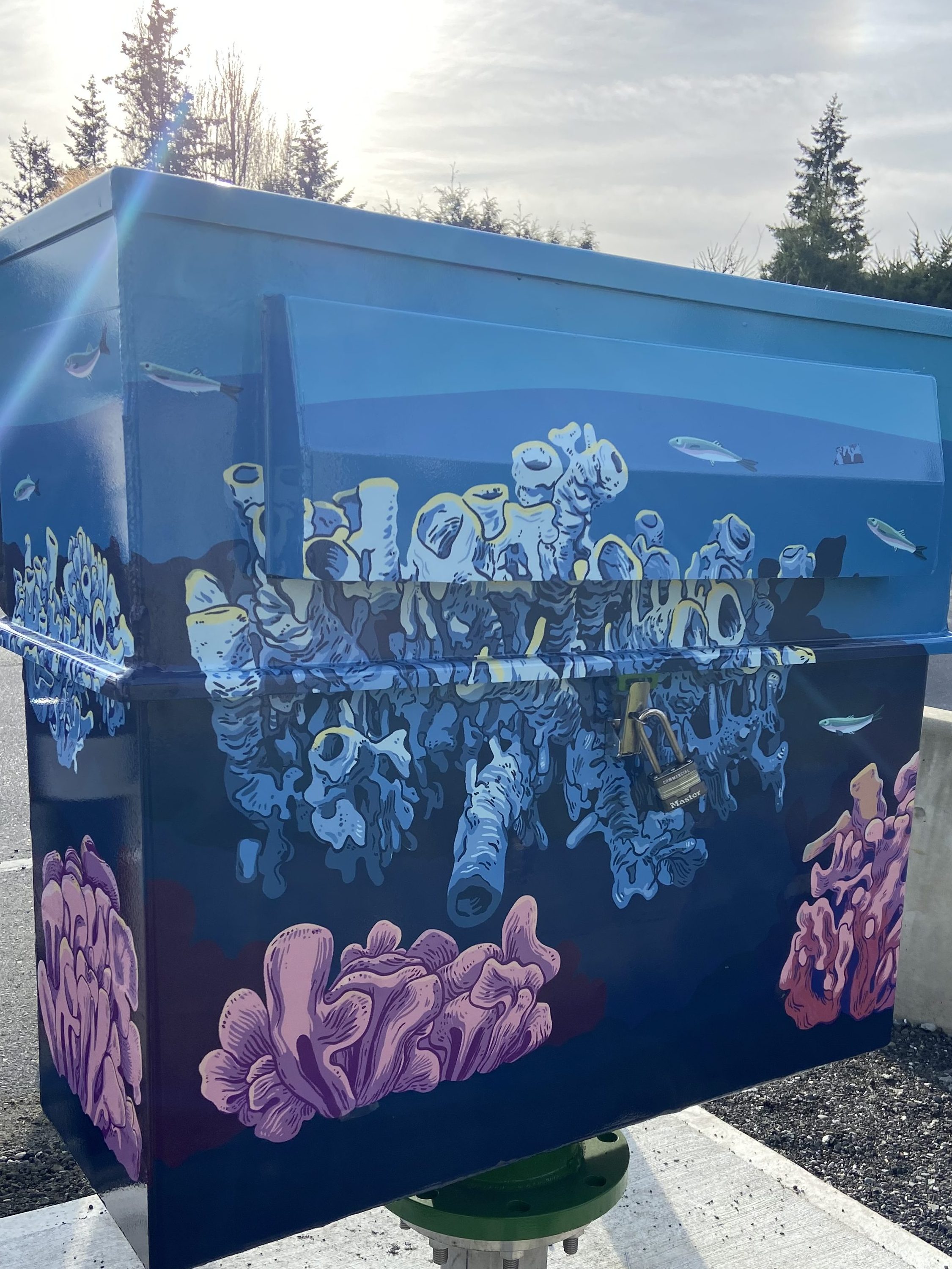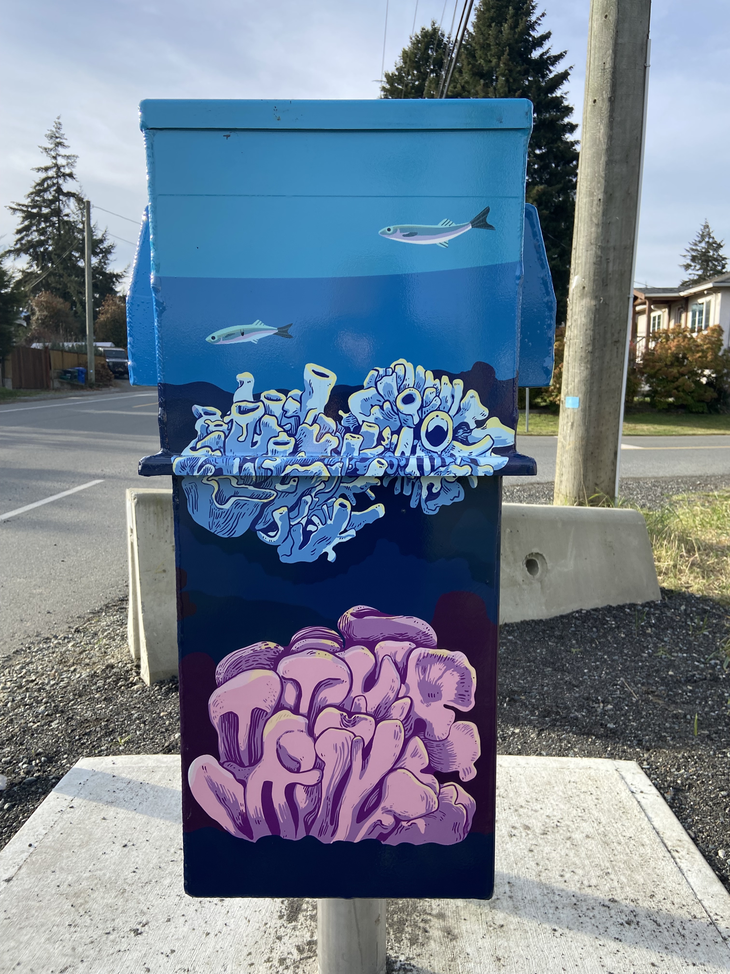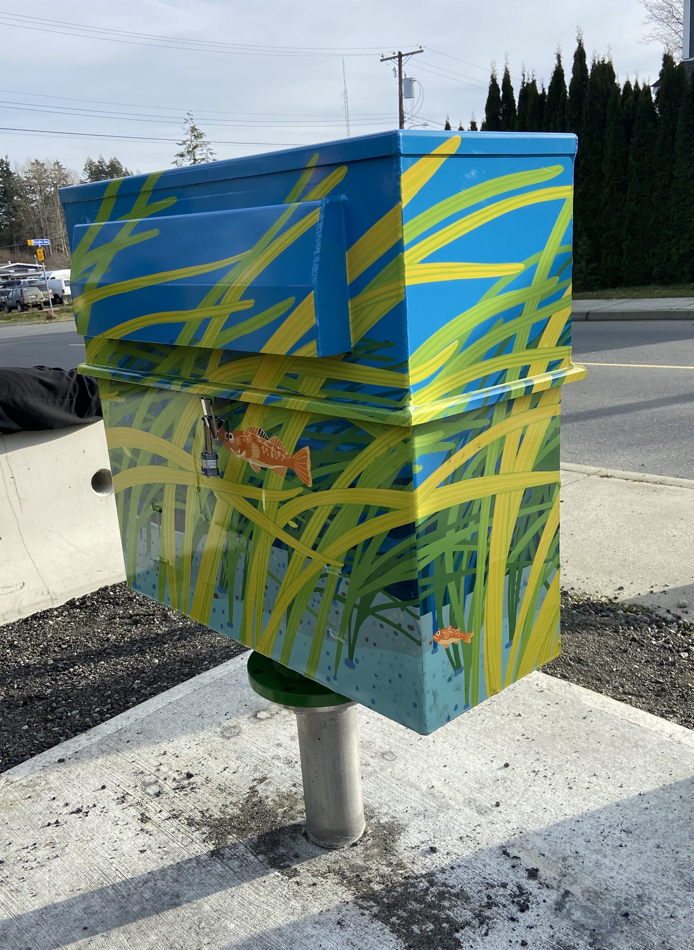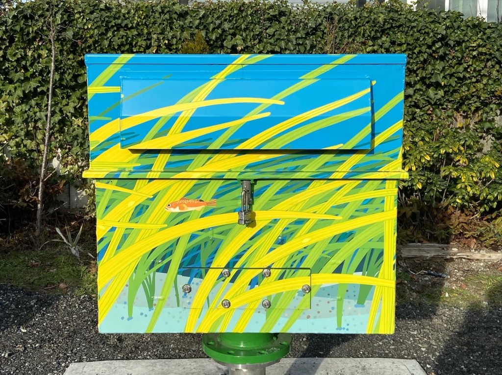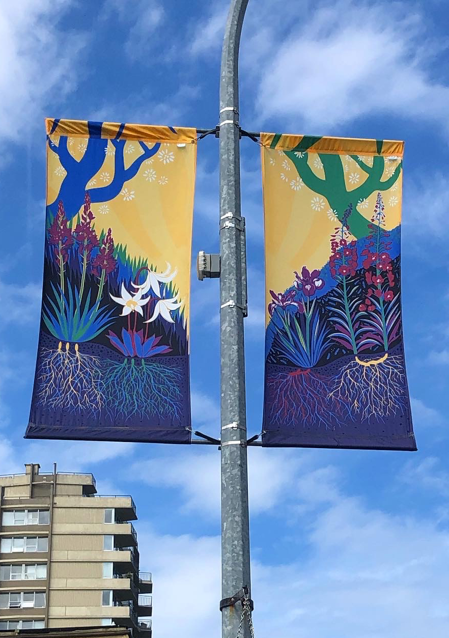 Banner and utility box designs for the City of Nanaimo. Banner was displayed 2022 – 2024. Utility boxes were completed January 2025.