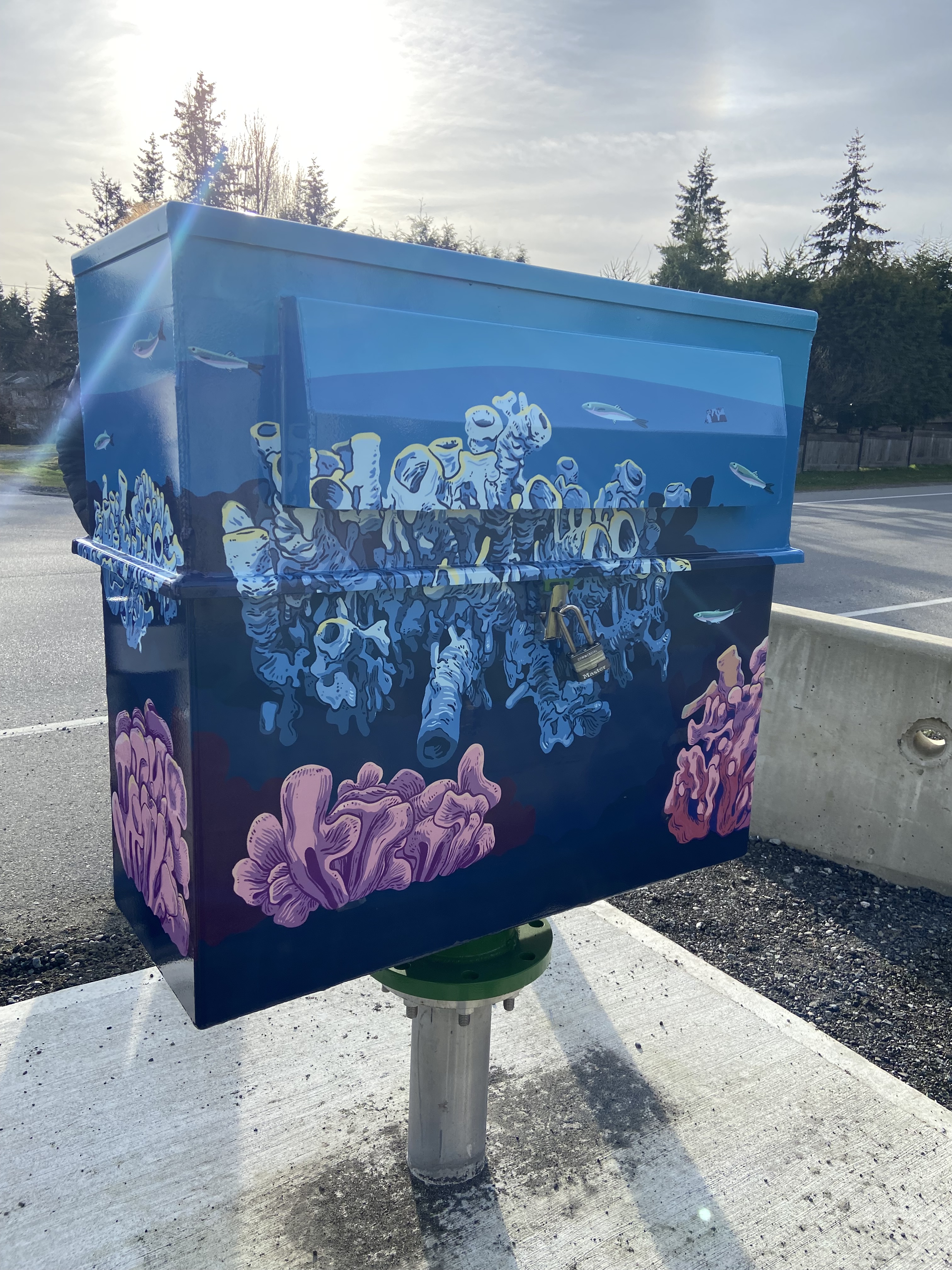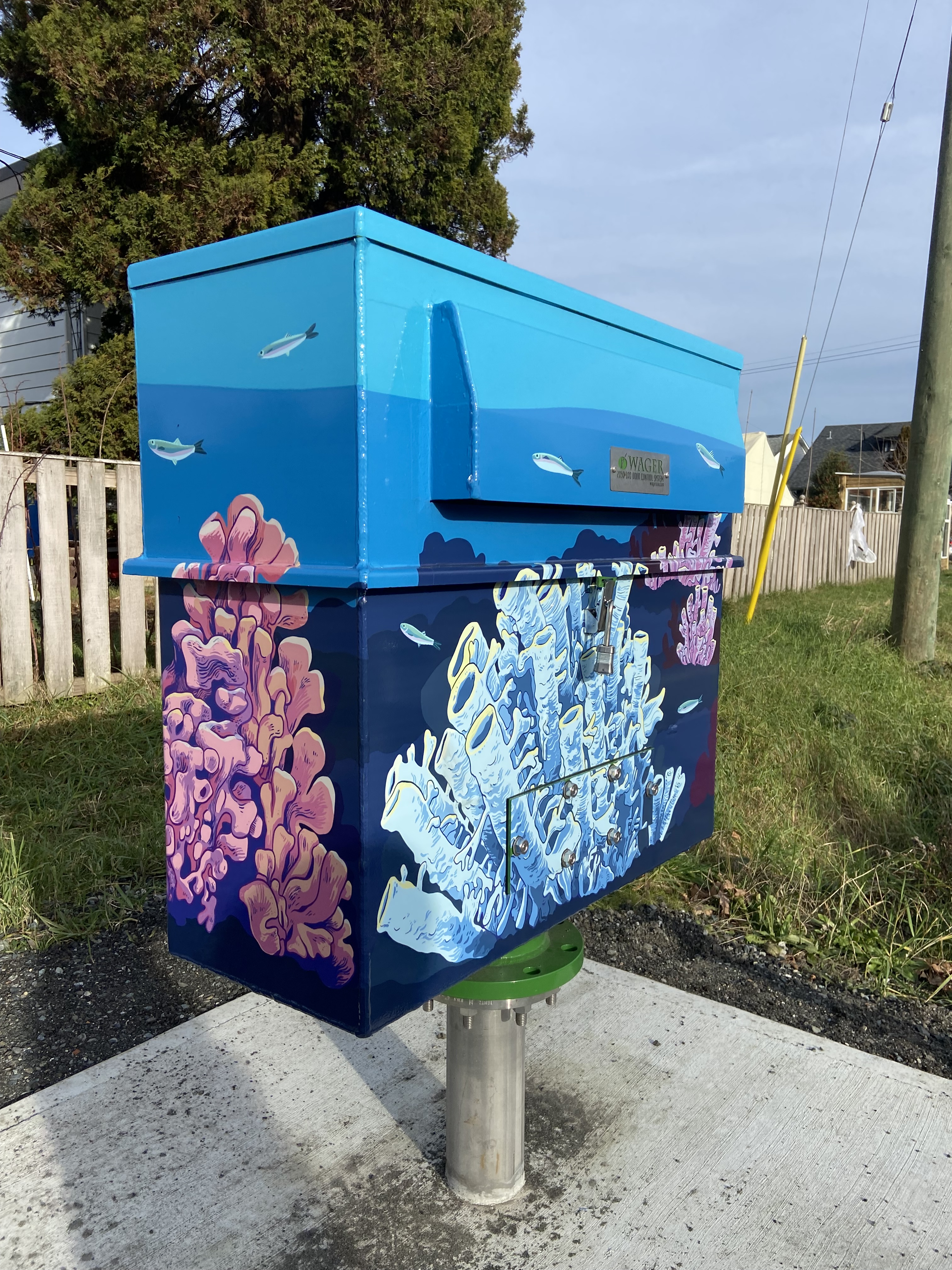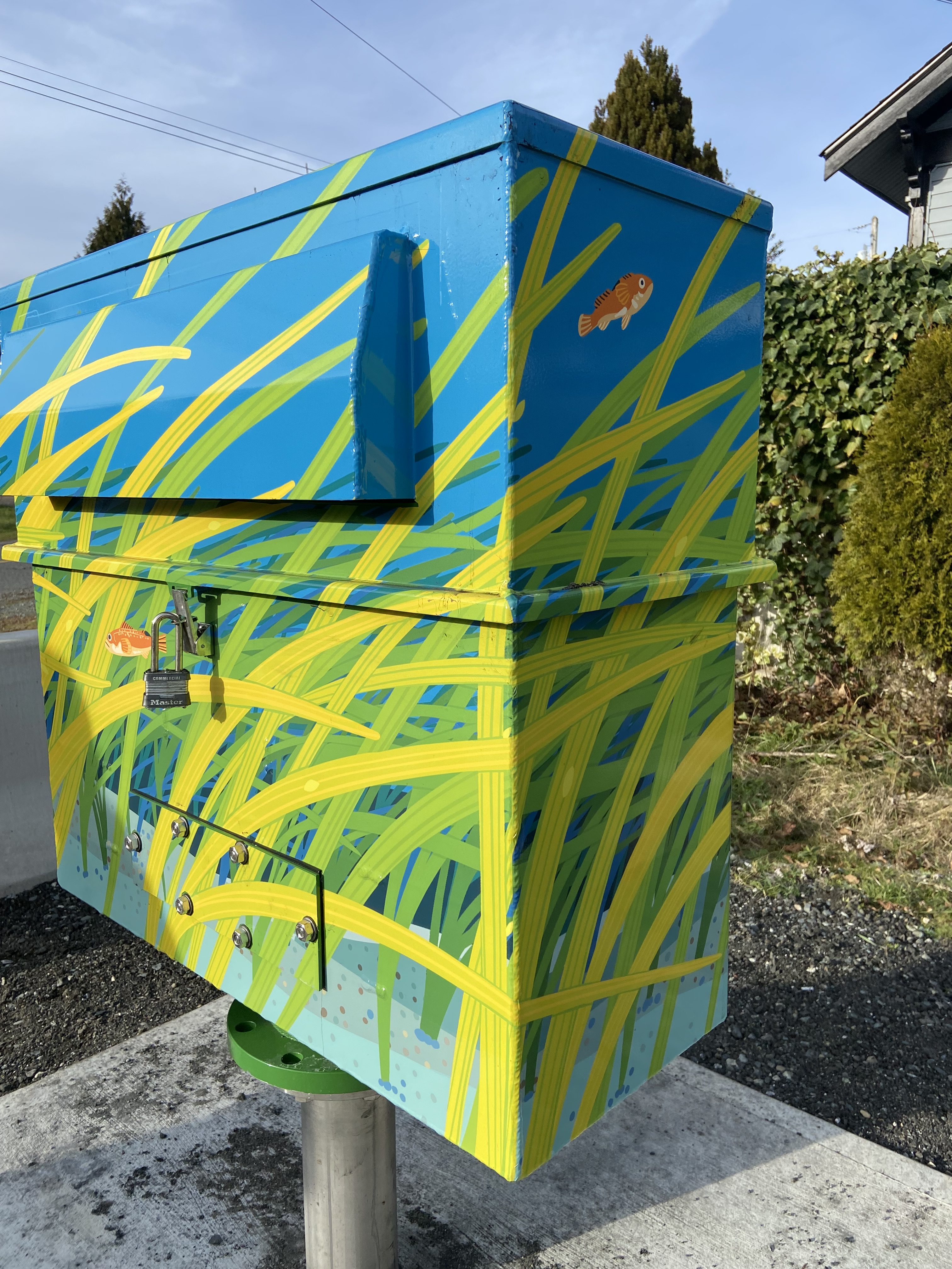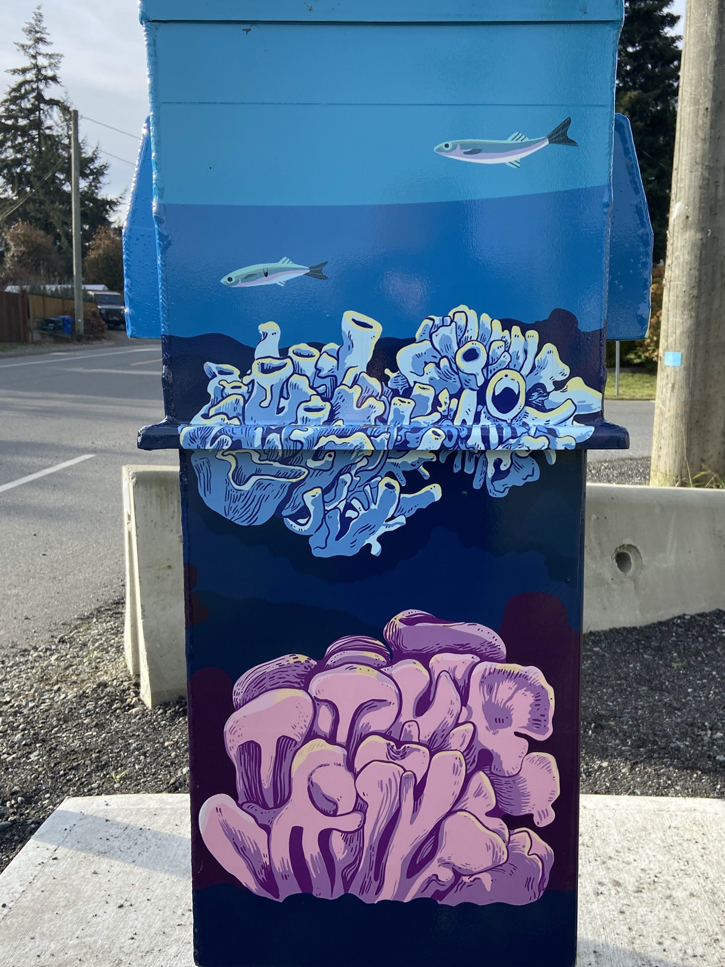 Banner and utility box designs for the City of Nanaimo. Banner was displayed 2022 – 2024. Utility boxes were completed January 2025.