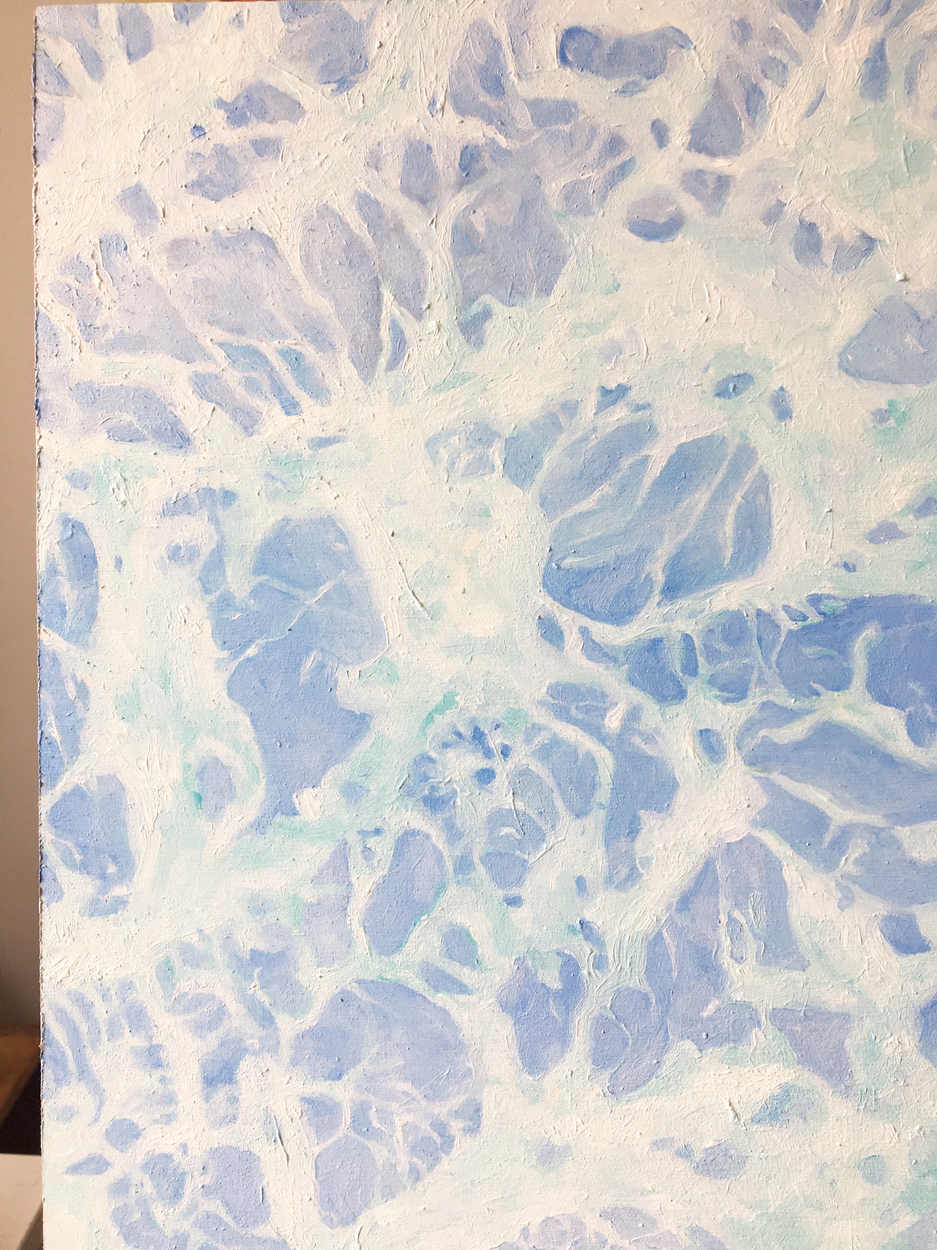 I imagine we’re like the foam tumbling through the deep and unknowable current driven forces of our lives and circumstances. We can eventually find each other through a combination of will and chance for a moment to make contact. I guess through painting this I was expressing a hope for this to happen for me.